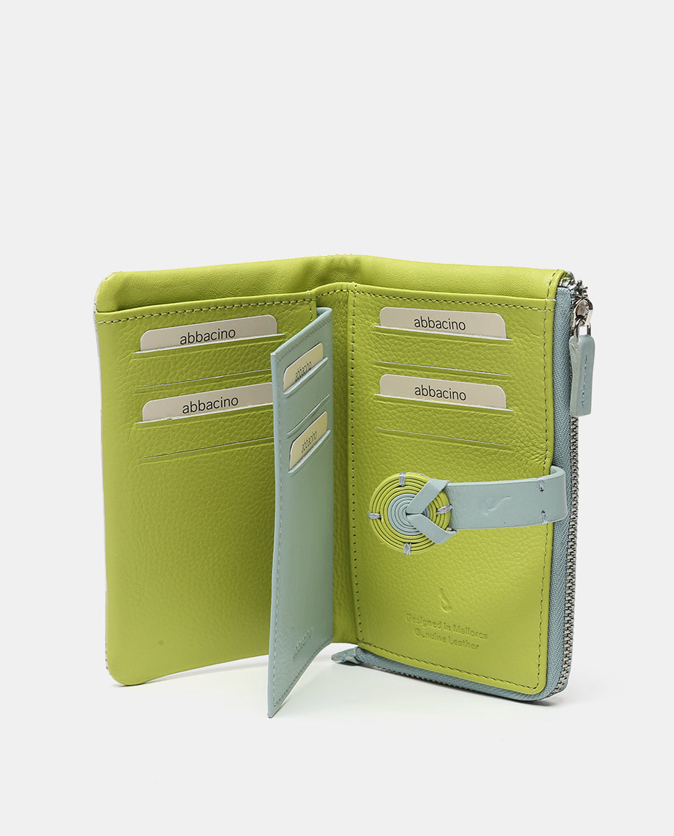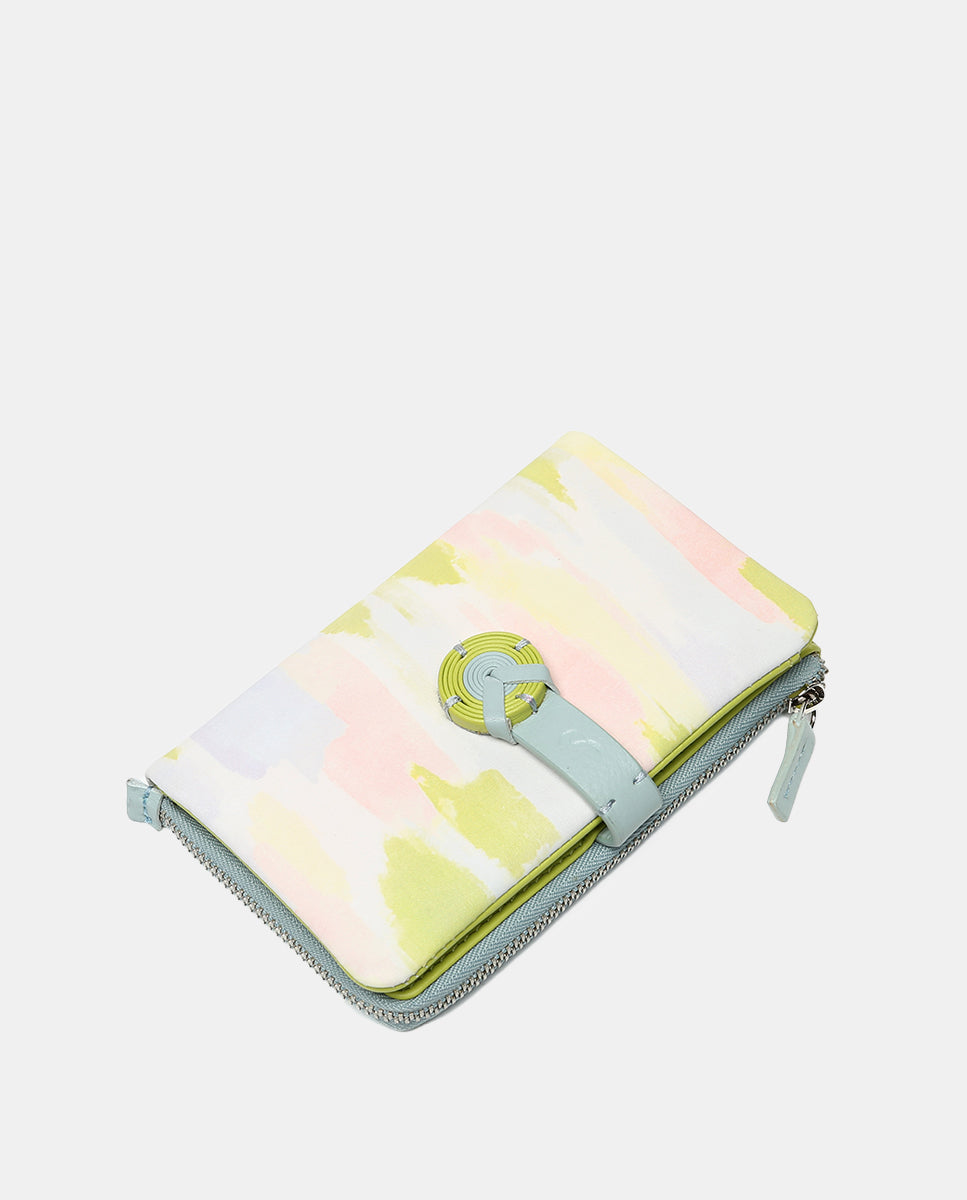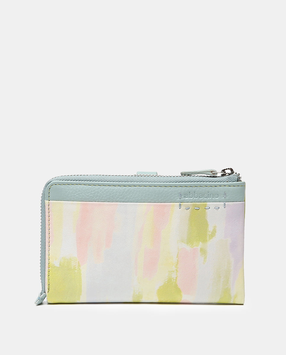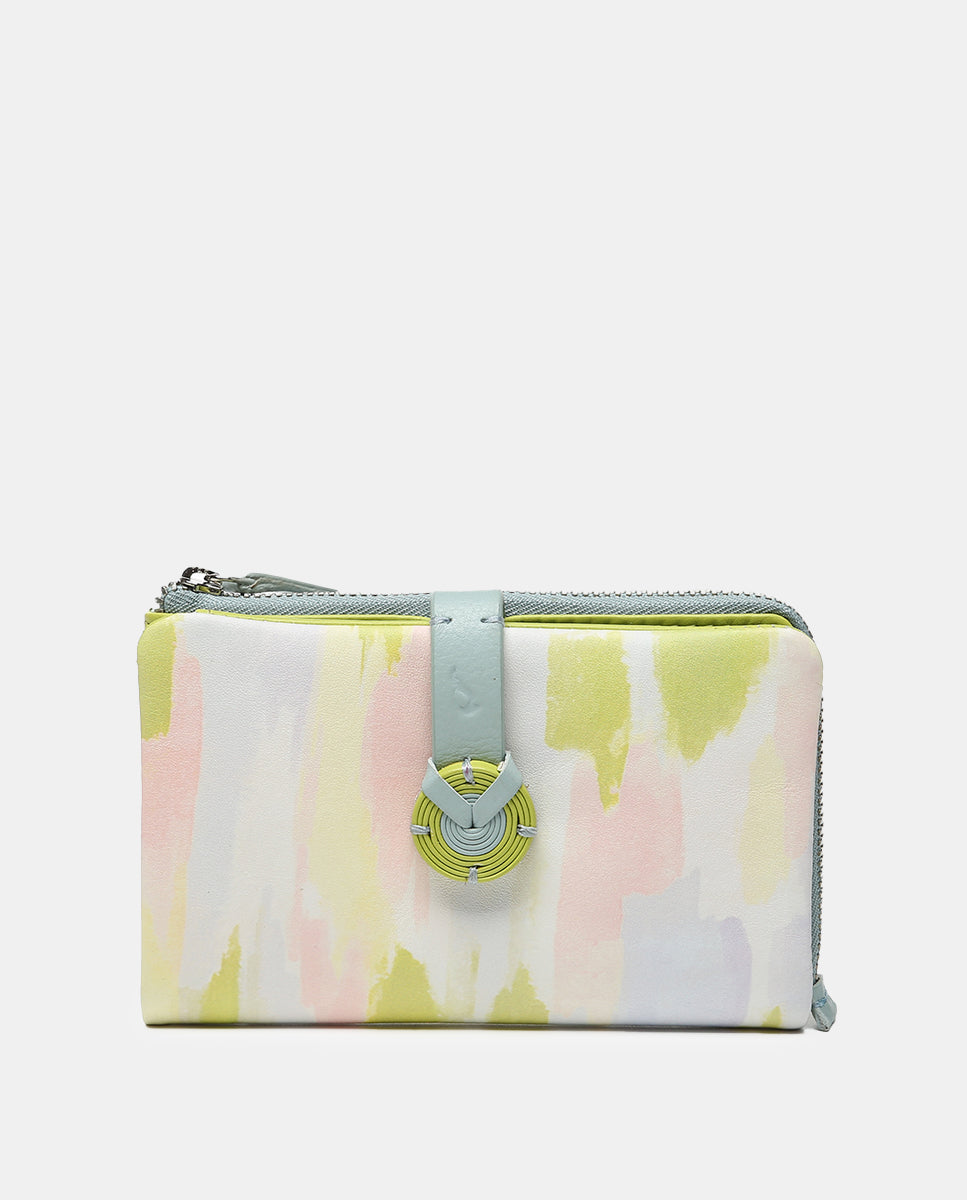 Mittlere Damenbörse aus Leder. Ein Design mit einem schönen Aquarelldruck in sehr sommerlichen Farben. Es handelt sich um ein Accessoire, das bis ins kleinste Detail sorgfältig gestaltet ist und uns dank seiner Anordnung eine hervorragende Ordnung ermöglicht. Die Hauptmerkmale sind: