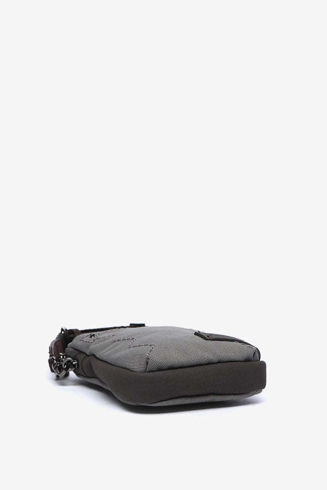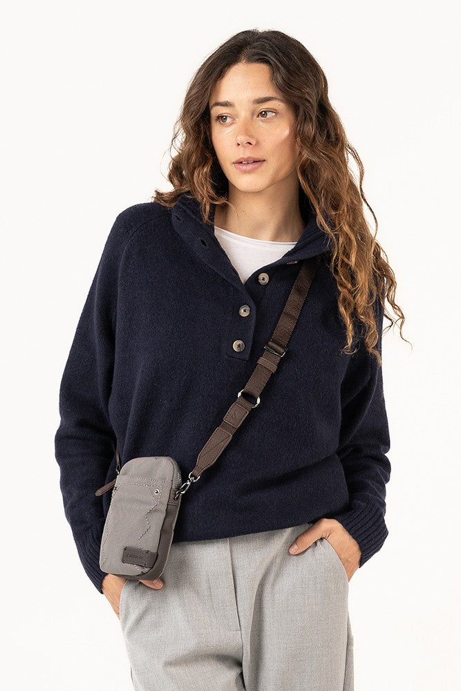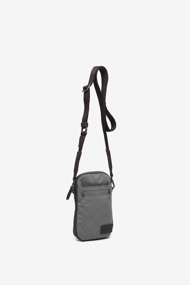 Handy-Tasche aus grauen Recyclingmaterialien.