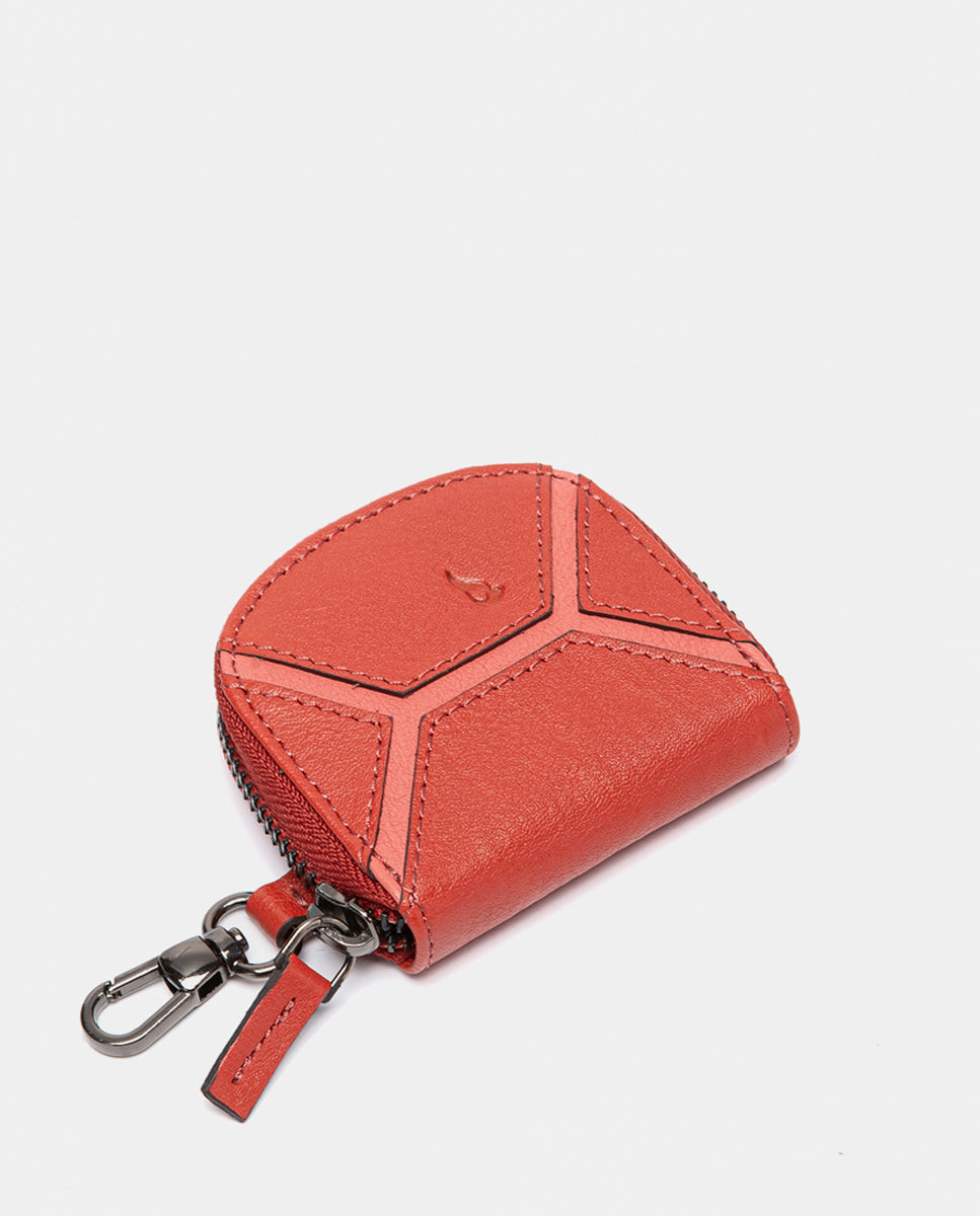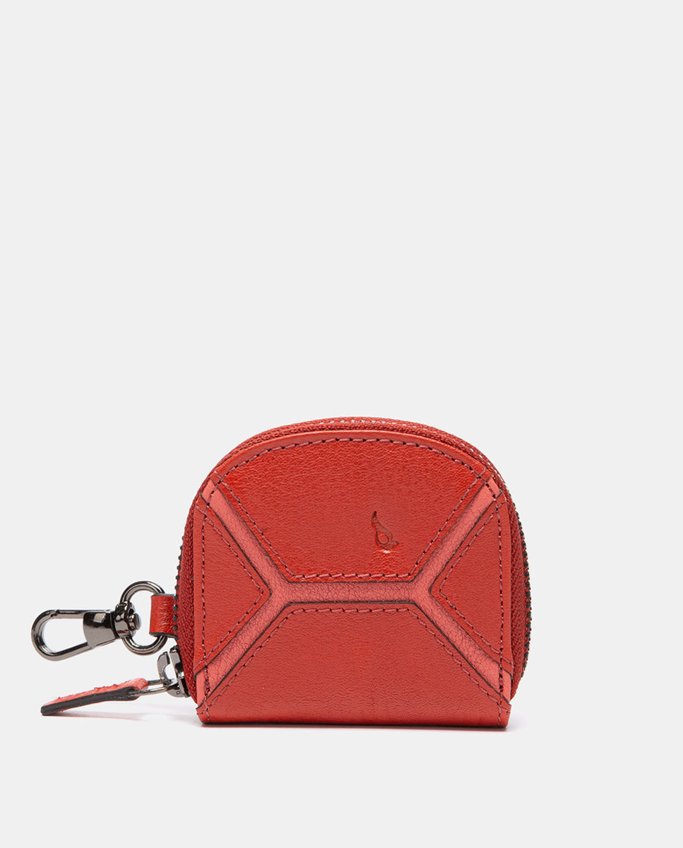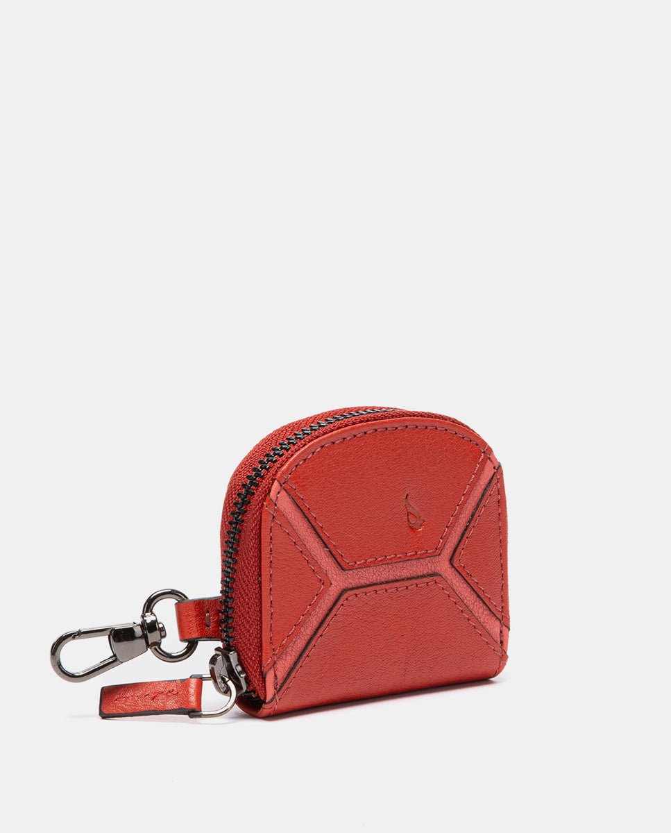 Monedero en piel circular rojo