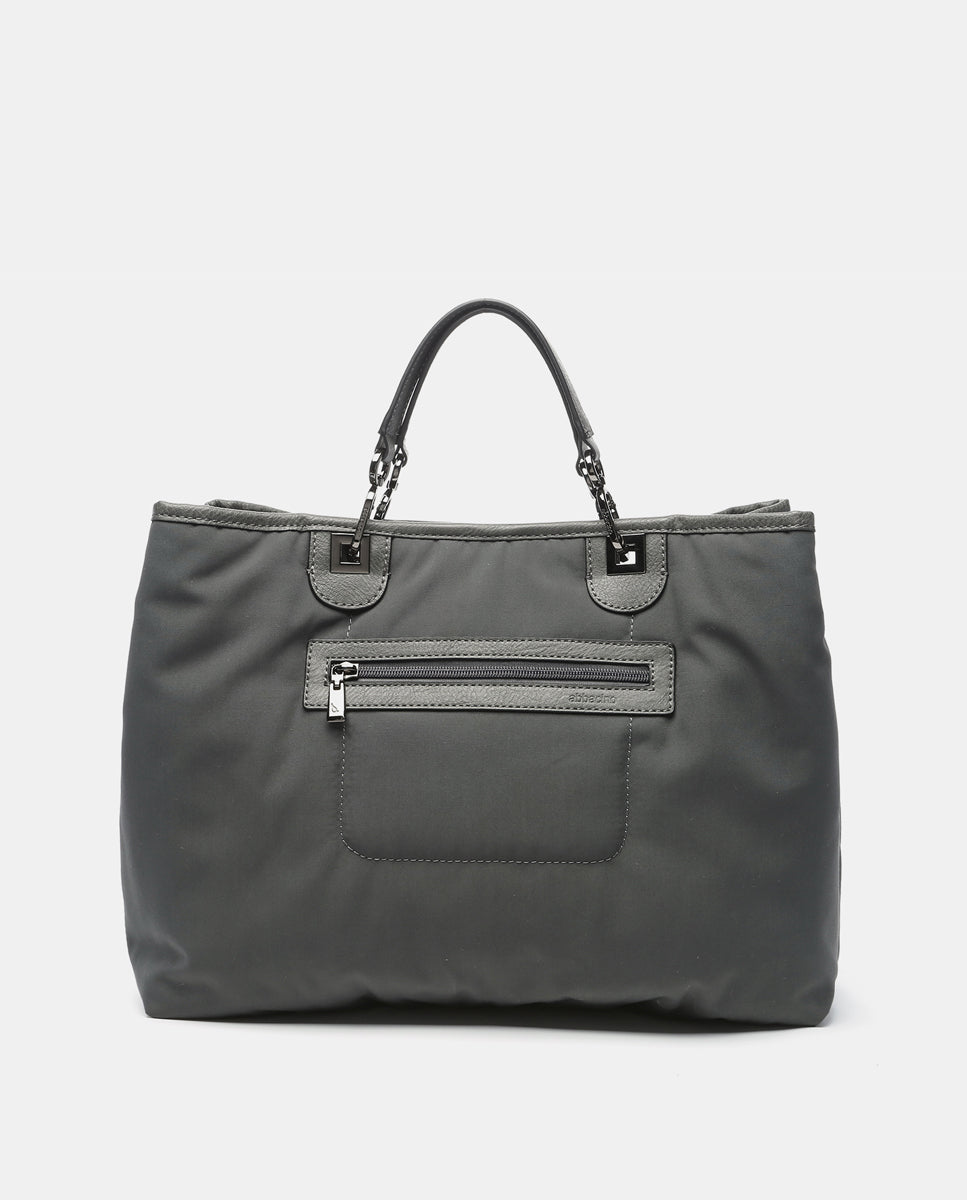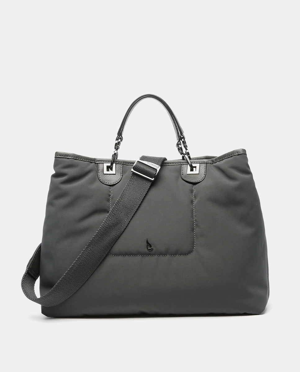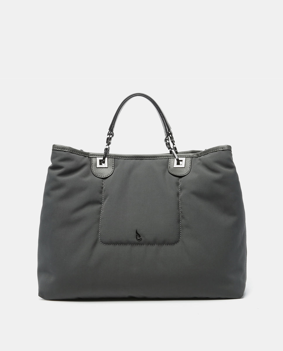 Große Nylon-Handtasche in Grau.