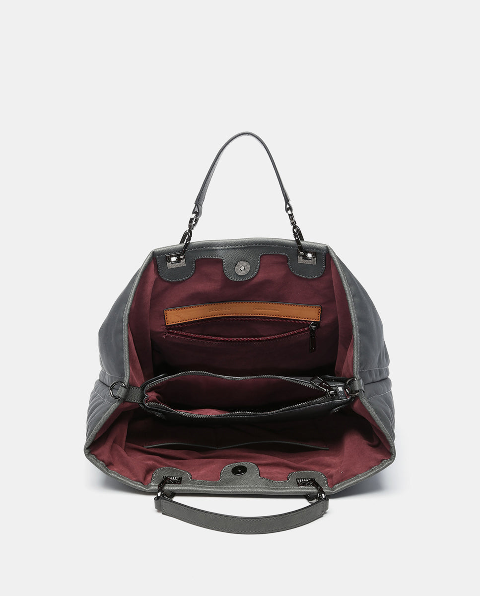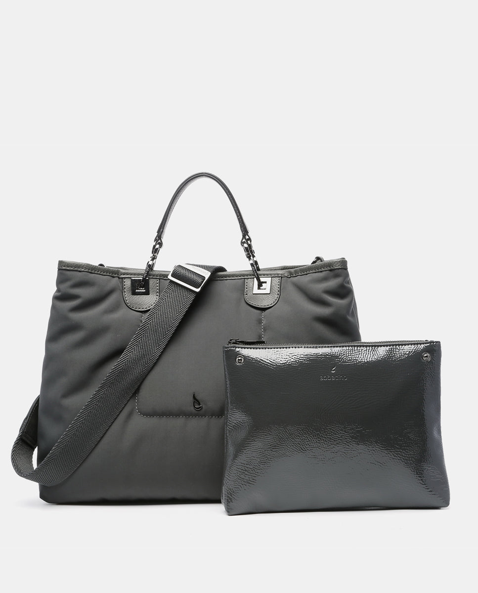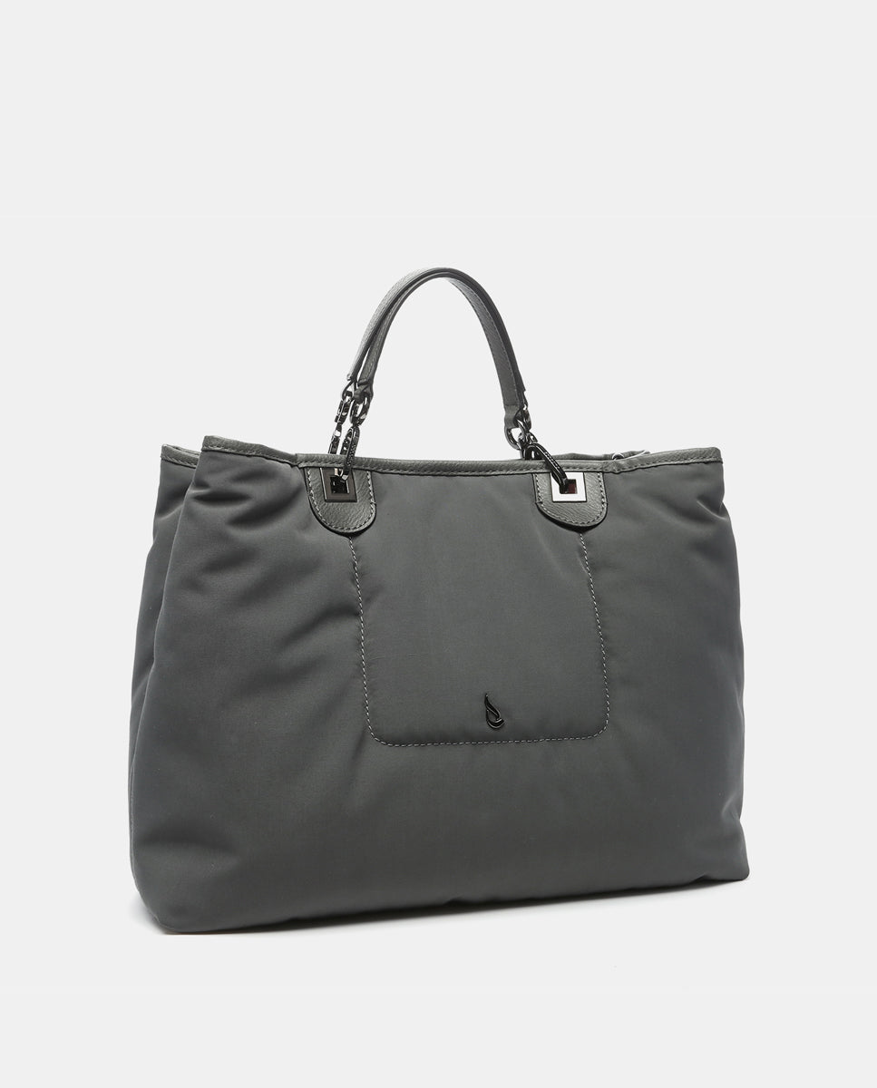 Große Nylon-Handtasche in Grau.