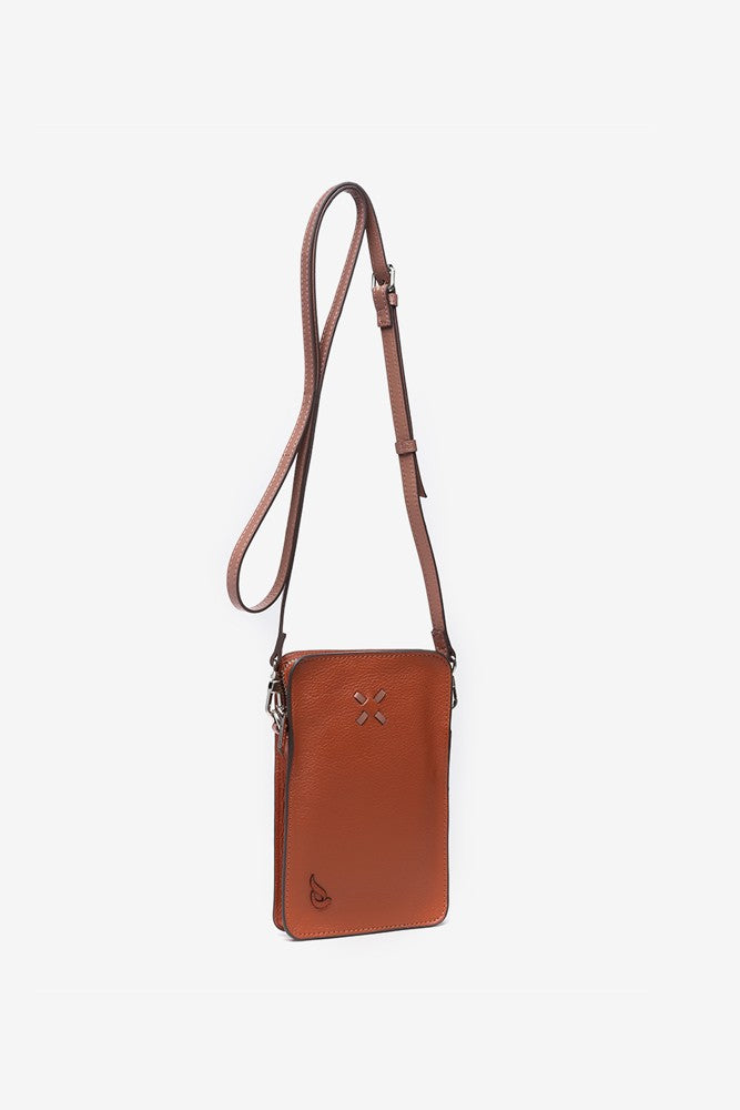 Damentasche für das Handy aus Premium-Leder. Dieses Mini-Design besticht durch die Kombination von zwei Farbtönen: einem Hauptton, der die Tasche färbt, und einer ergänzenden Farbe, die den Schulterriemen schmückt. Ein sehr praktisches Format, das es dir ermöglicht, deine Essentials mitzuführen, ohne viel Platz zu beanspruchen.