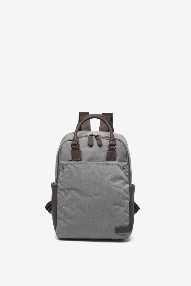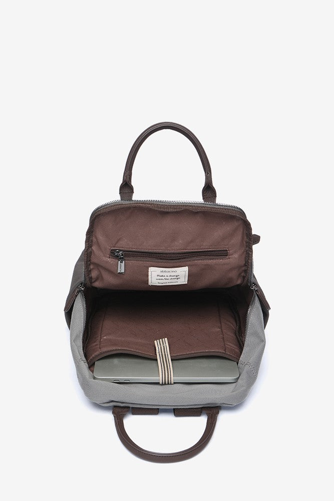 Graue Tasche aus recycelten Materialien.