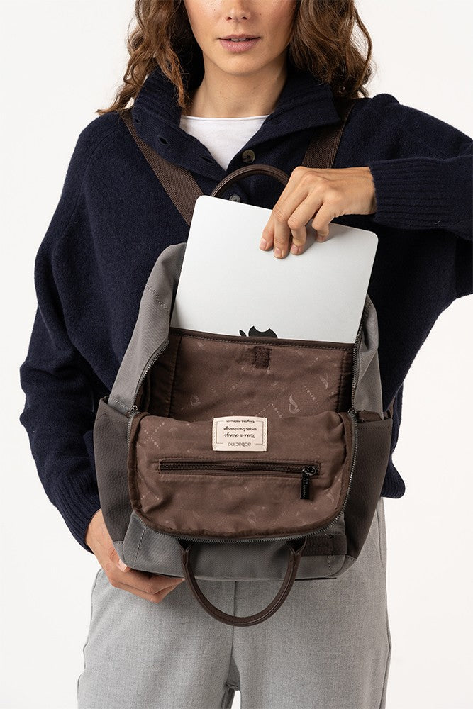 Damenrucksack aus recycelten und nachhaltigen Materialien. Ein sehr funktionales Design, das verschiedene herbstliche Farbtöne kombiniert. Perfekt, um Ihren Laptop und Ihre täglichen Essentials zu transportieren. Die Hauptmerkmale sind: