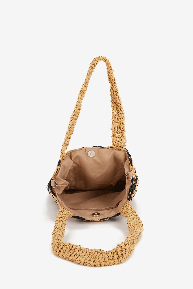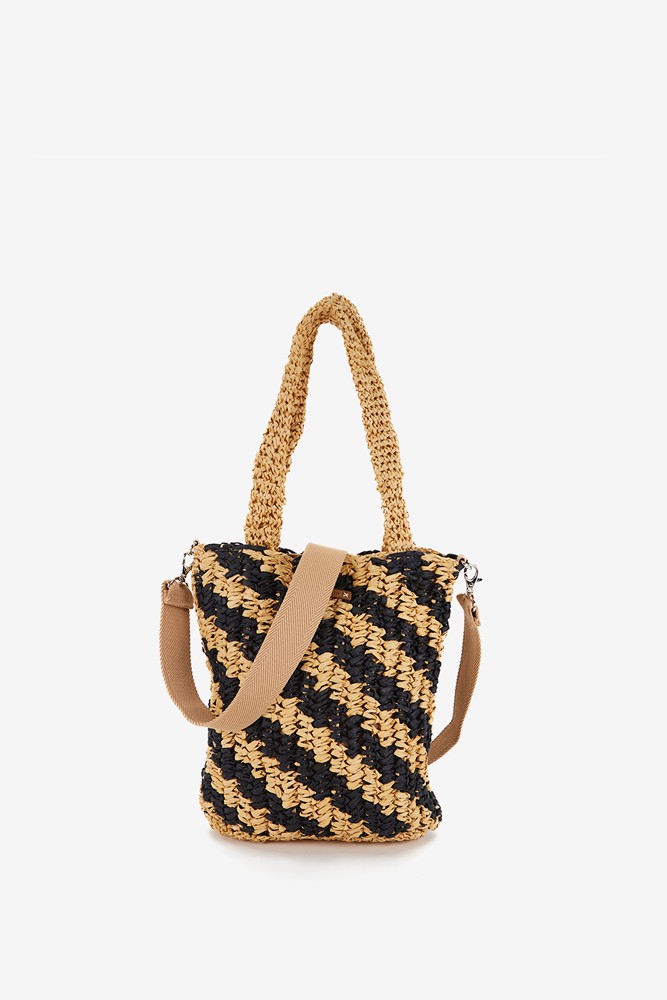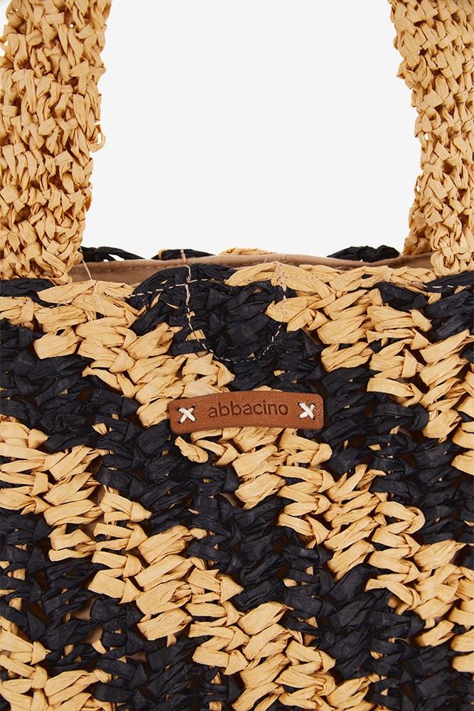 Damentasche aus geflochtenen Naturfasern mit kontrastierendem, linienförmigem Druck in Schwarz. Ein perfektes Design, um deinen Sommerlooks eine lässige und sehr trendige Note zu verleihen. Die Hauptmerkmale sind:
