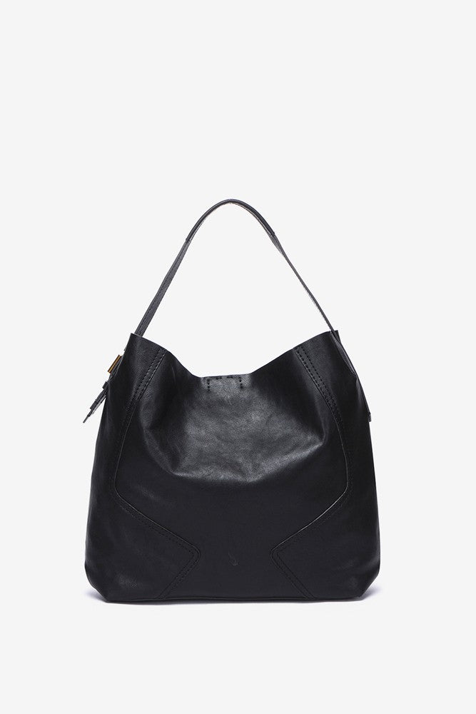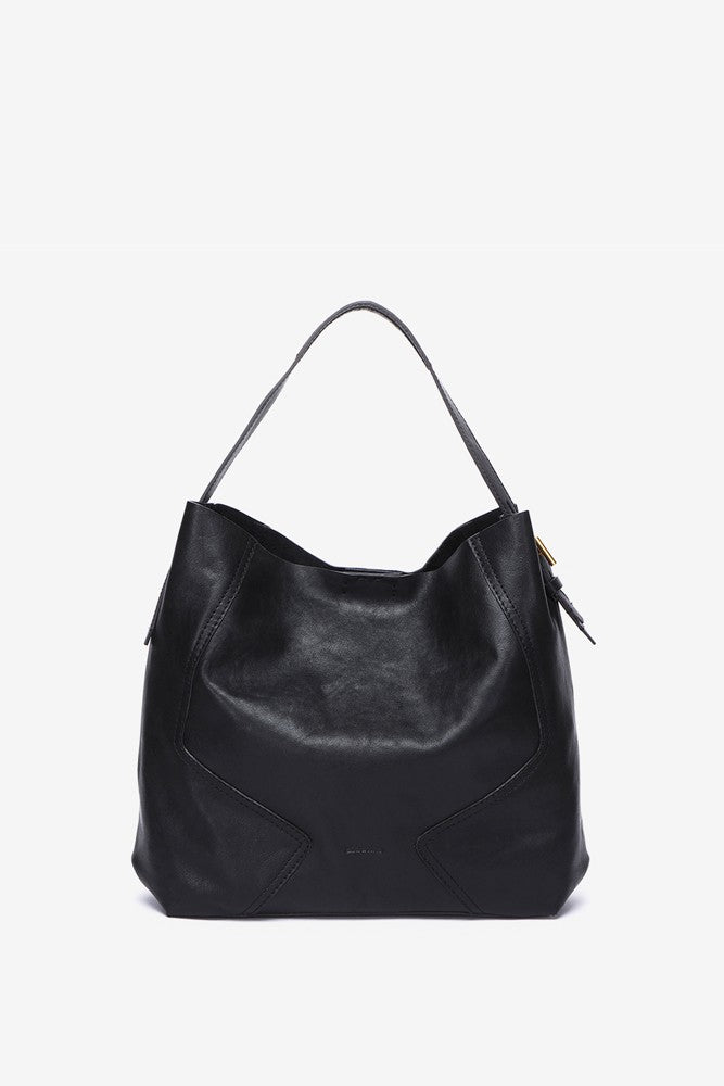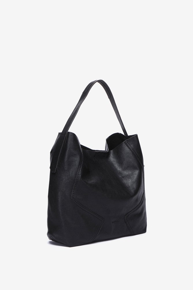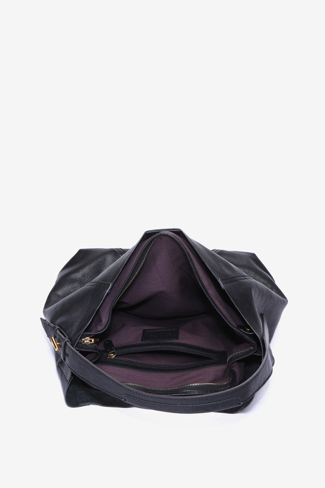Schultertasche im Hobo-Stil aus hochwertigem, weichem und fließendem Leder. Geräumig, leicht und funktional, zeichnet sich dieses Modell durch den geometrischen Effekt aus, der durch die Überlagerung von Lederstücken entsteht. Die Hauptmerkmale sind: