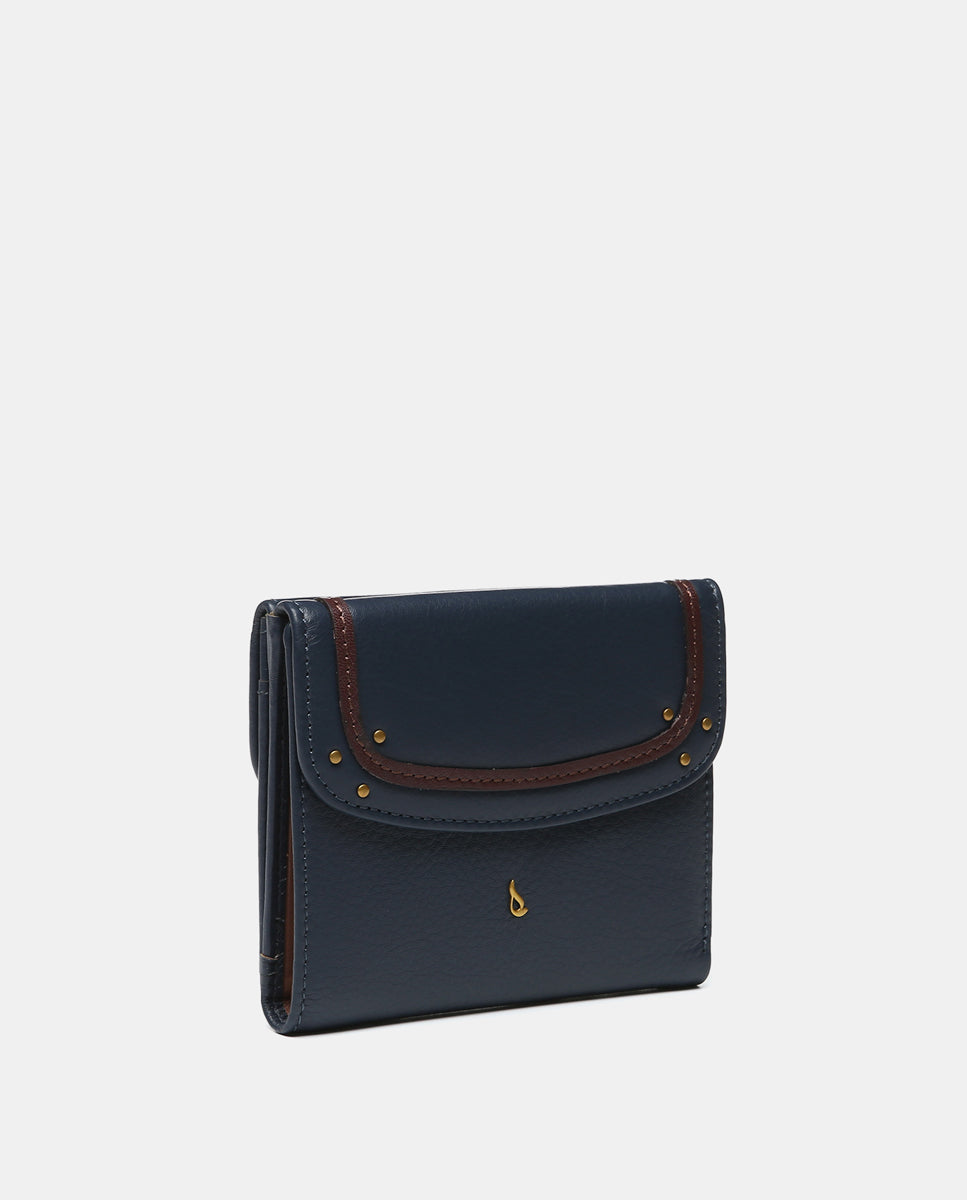 Premium Leder Woman, die sich mit einem Klappen und einem kontrastierenden Farbstreifen aufstiftet. Kompakt und praktisch, ideal, um das Nötigste organisiert zu bringen. Seine Hauptmerkmale sind: