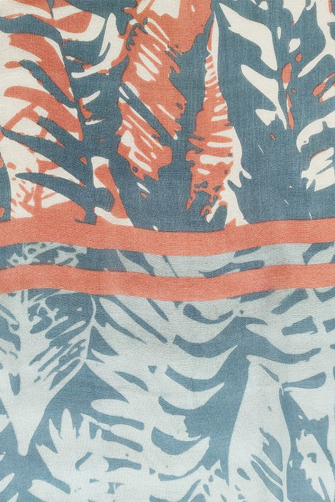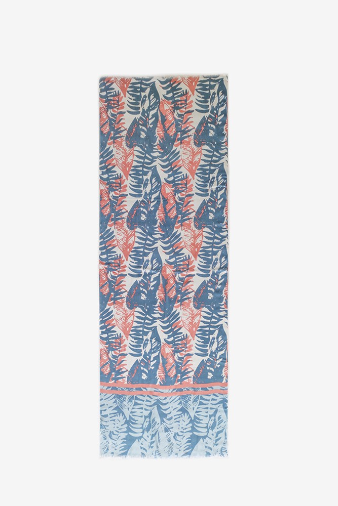 Damentuch aus Viskose mit Blätterdruck in Blau.